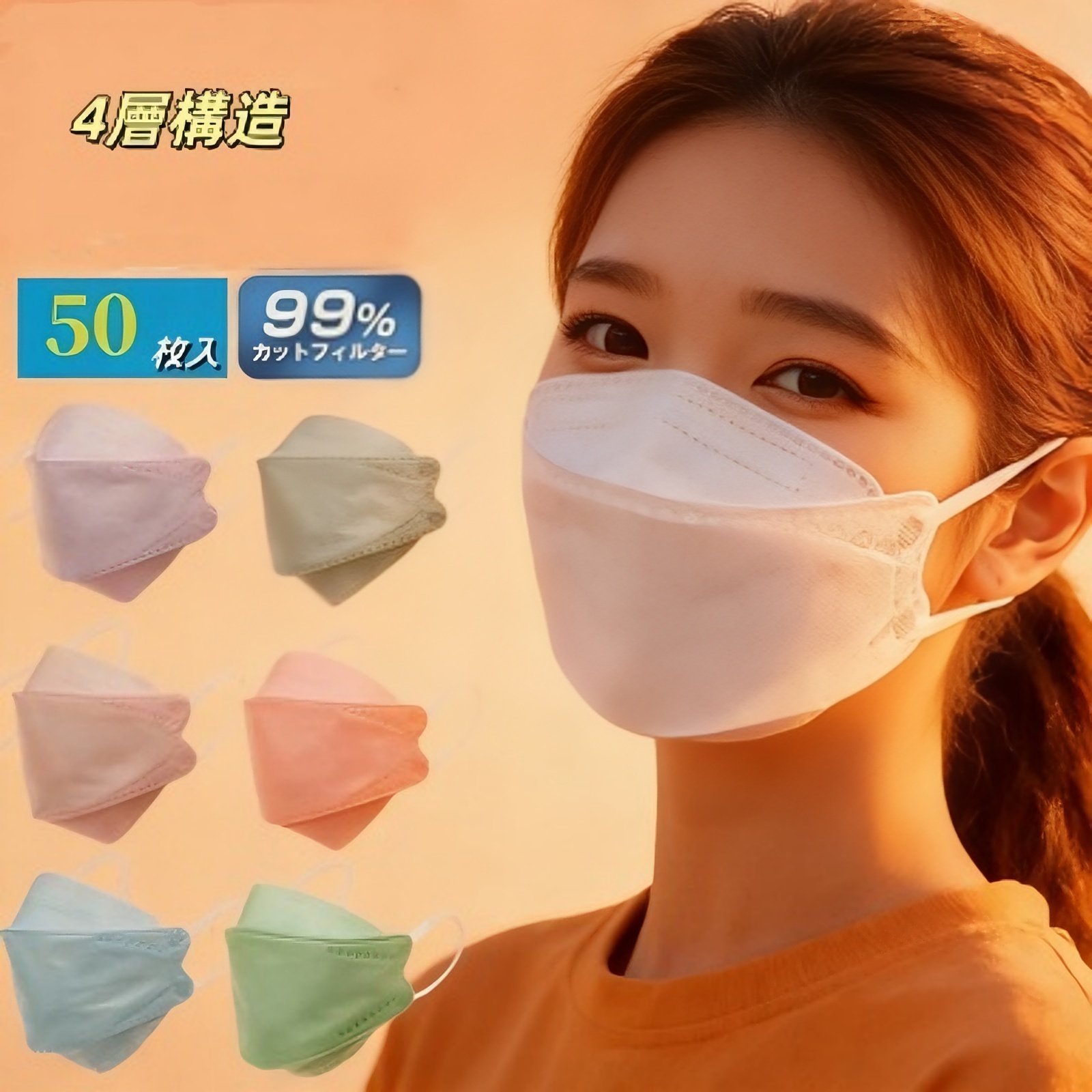 国内即納 !50枚入 個包装 マスク 4層構造 男女共用 不織布マスク 柳葉型 不織布 血色マスク 立体マスク 感染予防