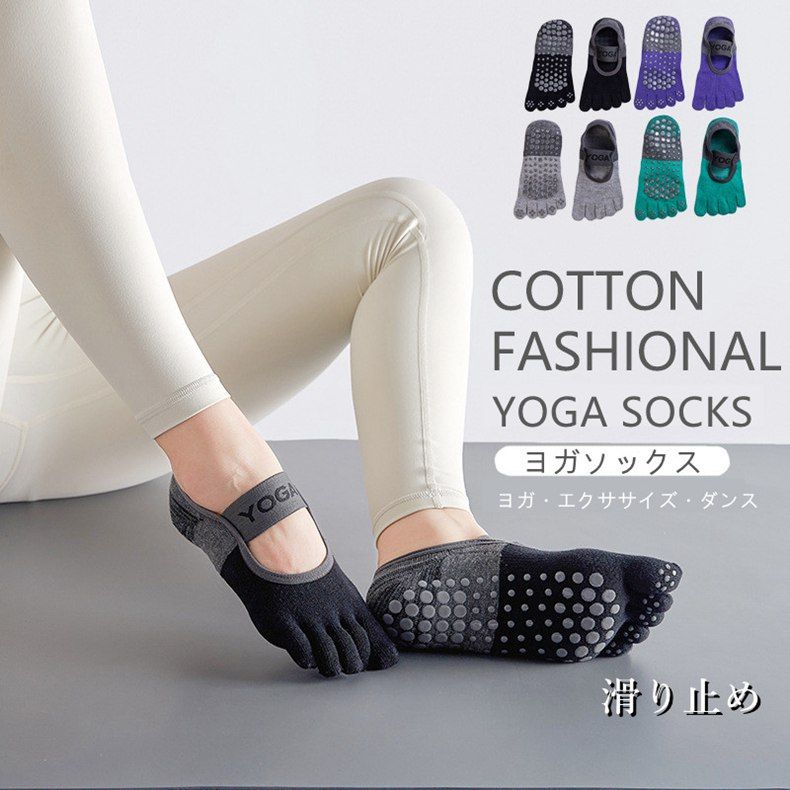 ヨガ靴下 足ツボマット用 ヨガソックス 滑り止め ソックス レディース シンプル ヨガウェア グッズ 可愛い 綿 5本指 女性用 スポーツソックス クロスバン