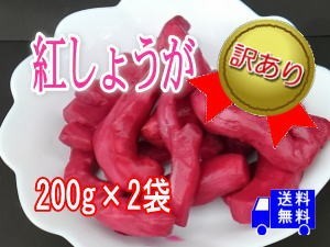 訳あり紅しょうが200g×2袋 メール便でお届け 訳あり品のため、大きさ不揃い、切れ端、色むら