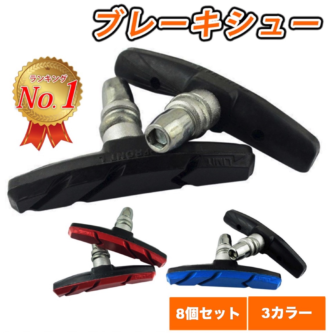 ブレーキシュー 8個セット 自転車 自転車用ブレーキパッド Vブレーキ 交換用 Vブレーキシュー 自転車ブレーキ 赤青黒 ロードブレーキシュー