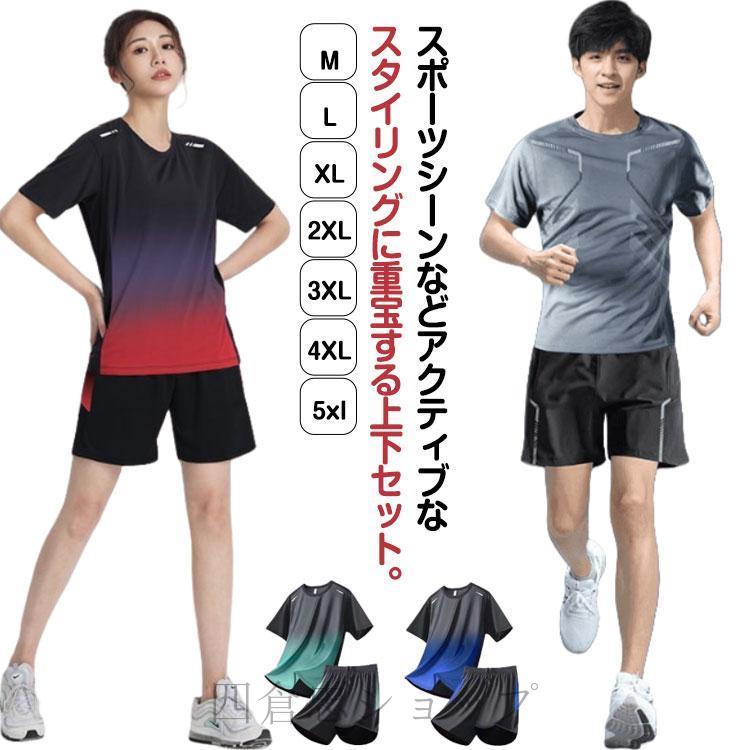 ランニングウェア レディース メンズ 上下セット 春 夏 秋 半袖Tシャツ ハーフパンツ 2点セット スポーツウェア 半袖 tシャツ 短パン トレーニ
