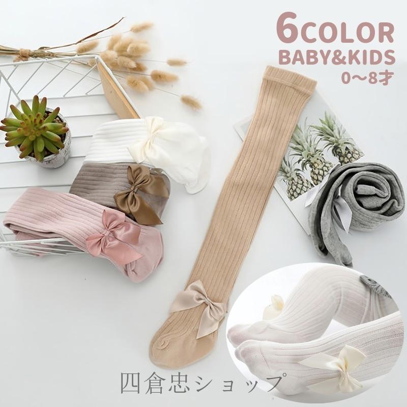 子供用タイツ ベビー用タイツ 子供 キッズ ベビー 赤ちゃん タイツ レッグウェア 女の子 女児 ガールズ 無地 シンプル リブ リボン ピンク グレ