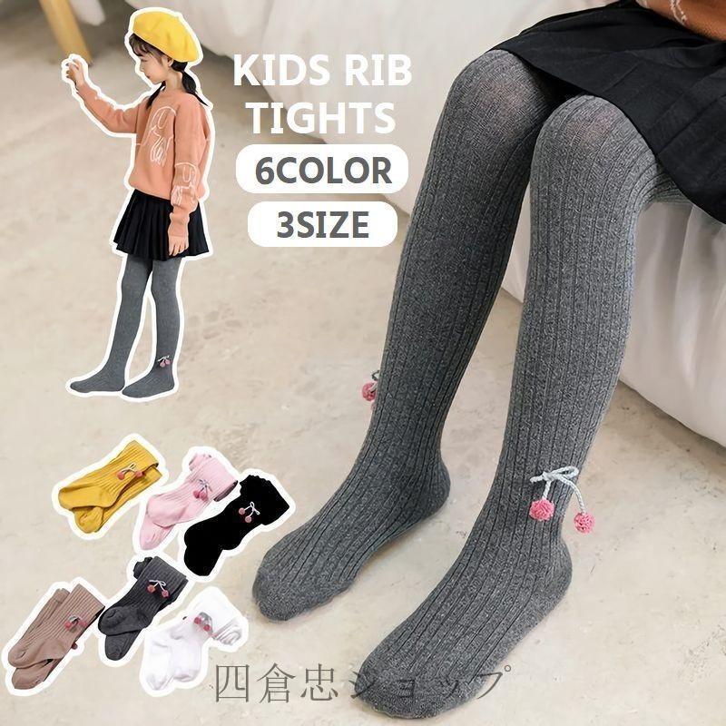 リブタイツ タイツ スパッツ 子供用 女の子用 インナー サクランボ さくらんぼ チェリー リブ 伸縮性 シンプル 防寒 暖かい あったか お洒落 オ