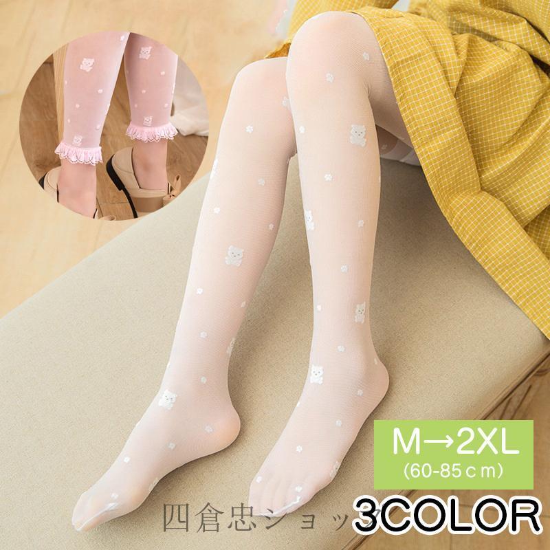タイツ 子供 キッズ 女の子 ガールズ ジュニア レッグウェア カラータイツ ファッション小物 薄手 ストッキング 透け感 花 フラワー クマ レース
