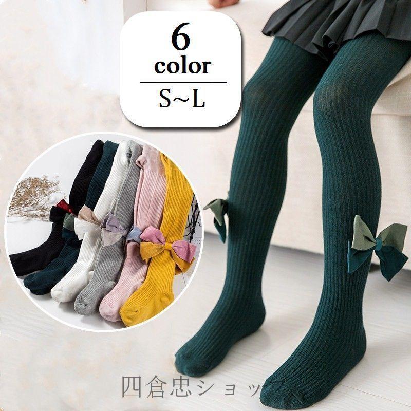 タイツ リブタイツ レッグウェア リボン付き キッズ 女の子 女児 子供用 ファッション小物 通気性 吸汗性 弾力性 防寒 寒さ対策 暖かい 無地 カ