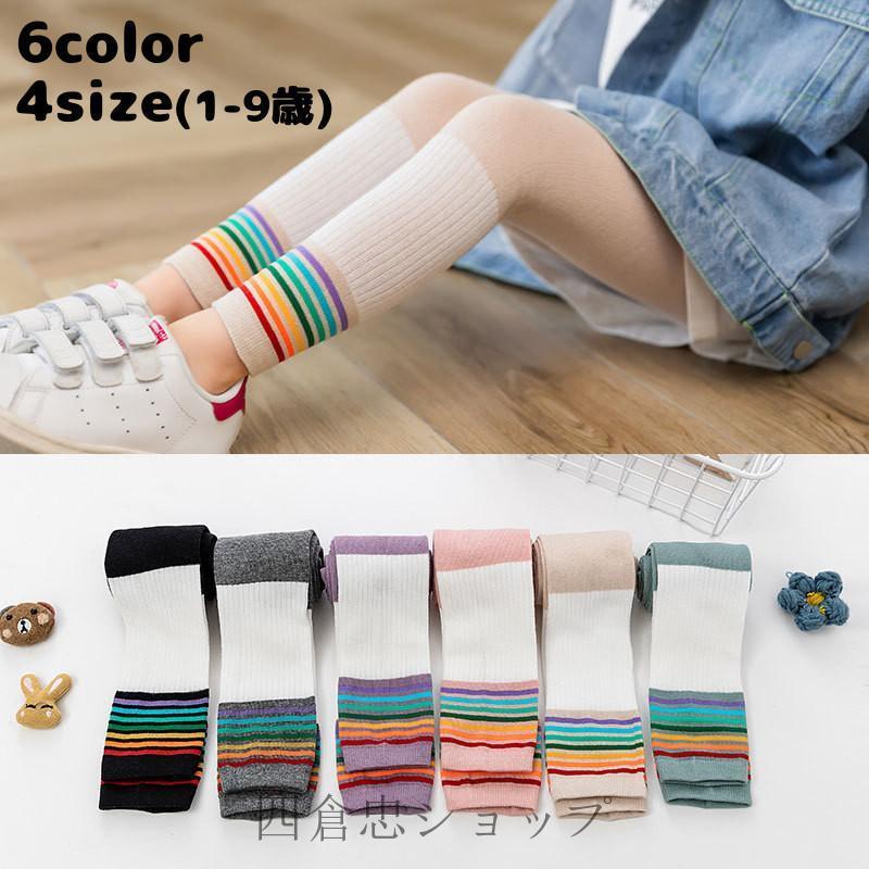 タイツ レギンス キッズ ベビー 赤ちゃん 子ども 子供用 女の子 レッグウェア レインボー 虹 カラフル ポップ 派手 リブ 配色 ゆめかわ 伸縮性