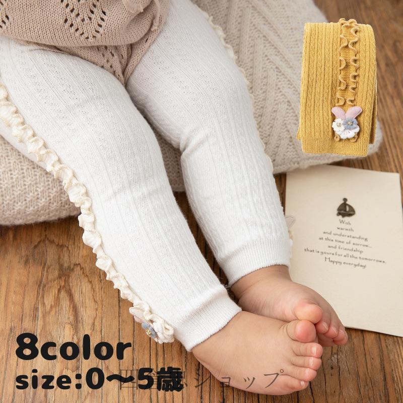 タイツ レギンス キッズ ベビー 赤ちゃん 子ども 子供用 女の子 レッグウェア ケーブル 編み リブ フリル あったか うさぎ ウサギ 伸縮性 無地