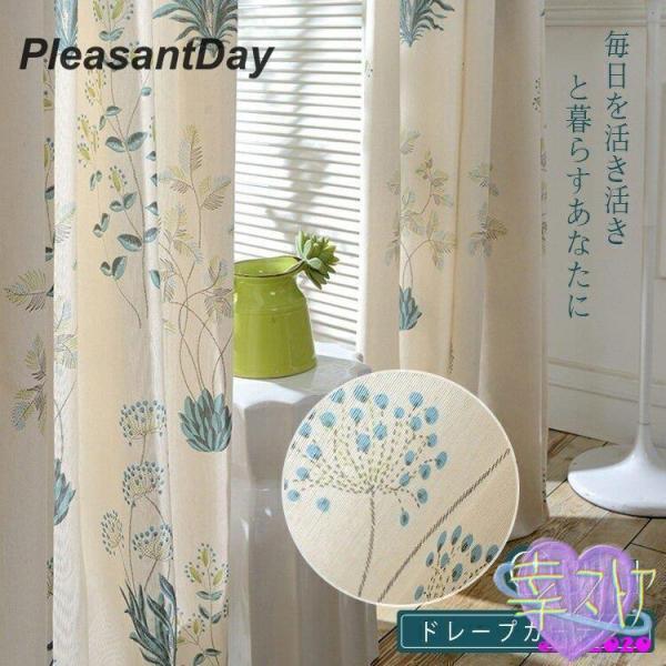 爆買 カーテン 北欧 オーダーカーテン 遮光 グリーン 花柄 アジアン タンポポ リーフ 可愛い 幅60?100c丈101?200cm クリスマス ギフト プレゼント