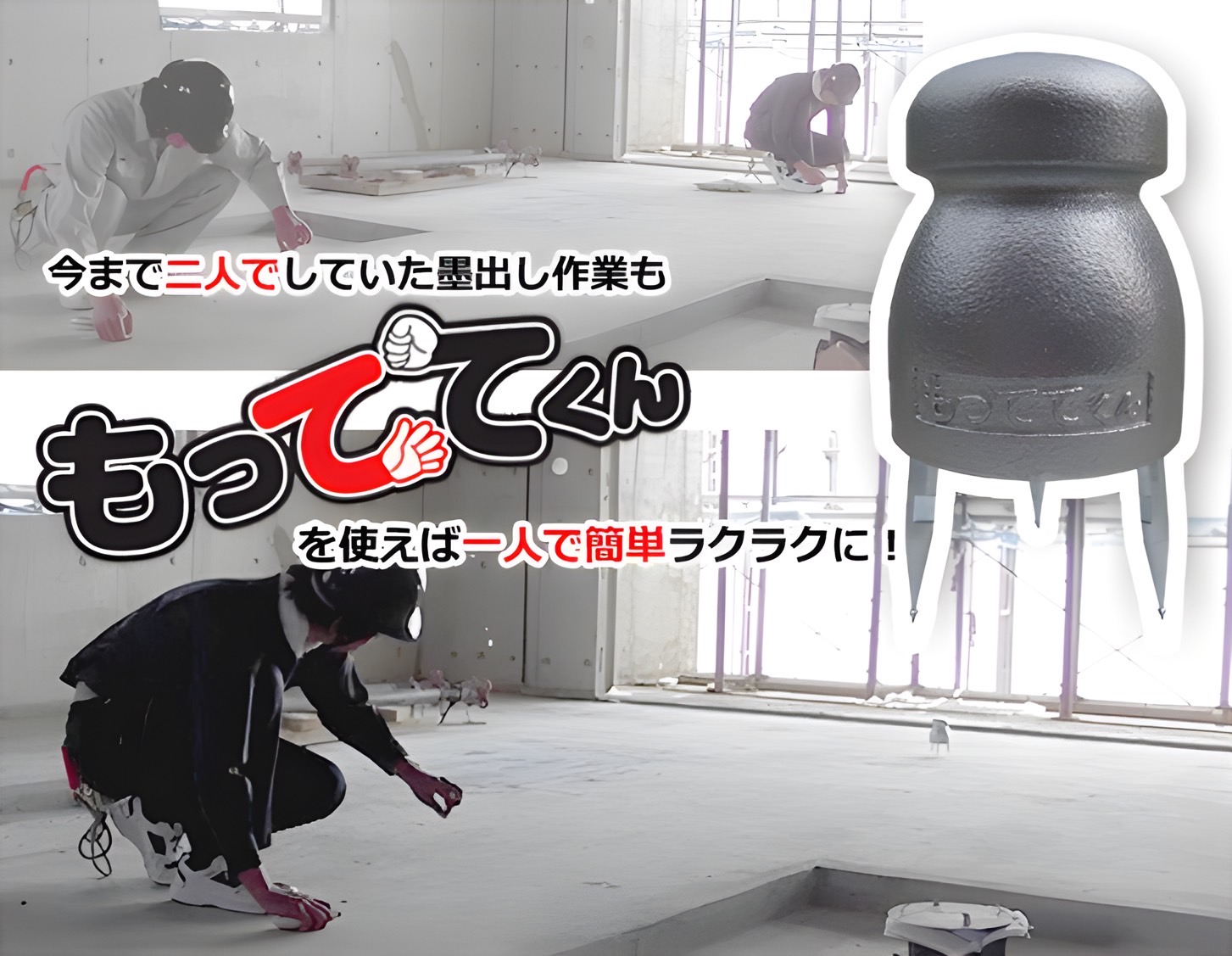 2・もっててくんを置き、墨つぼの糸を張って墨を打ちます。