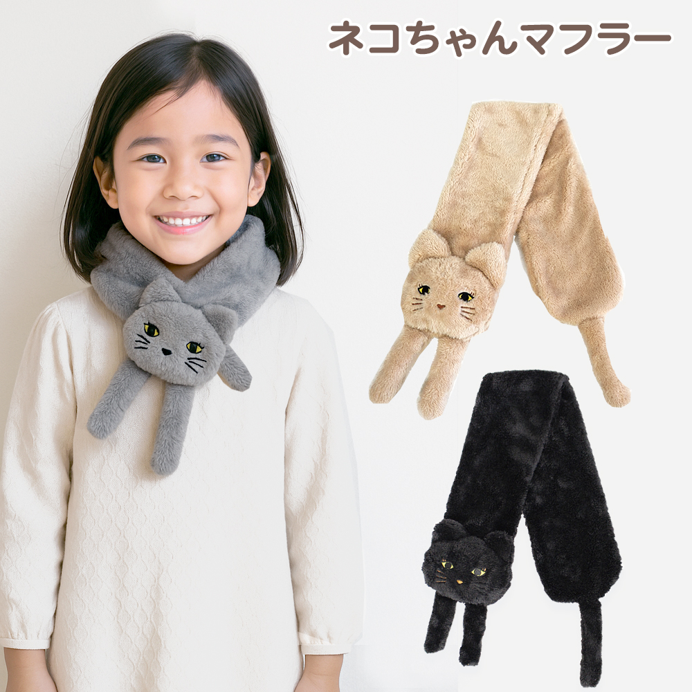 可愛くてあったか★大人も子どもも使えるネコちゃんマフラー まるでネコちゃんが肩に乗っているような可愛いマフラー♪