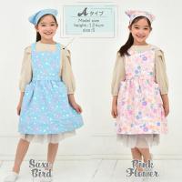 エプロンとお揃いの三角巾が一緒になった、エプロンセットです。ギャザーがたっぷり入ったふわっとしたかわいいAタイプと、シンプルな形のストレート型のBタイプをご用意しています。エプロンと三角巾は後ろがゴムなので、すっぽりかぶるだけの簡単仕様。小さなお子様でもひとりでお着替え可能です。