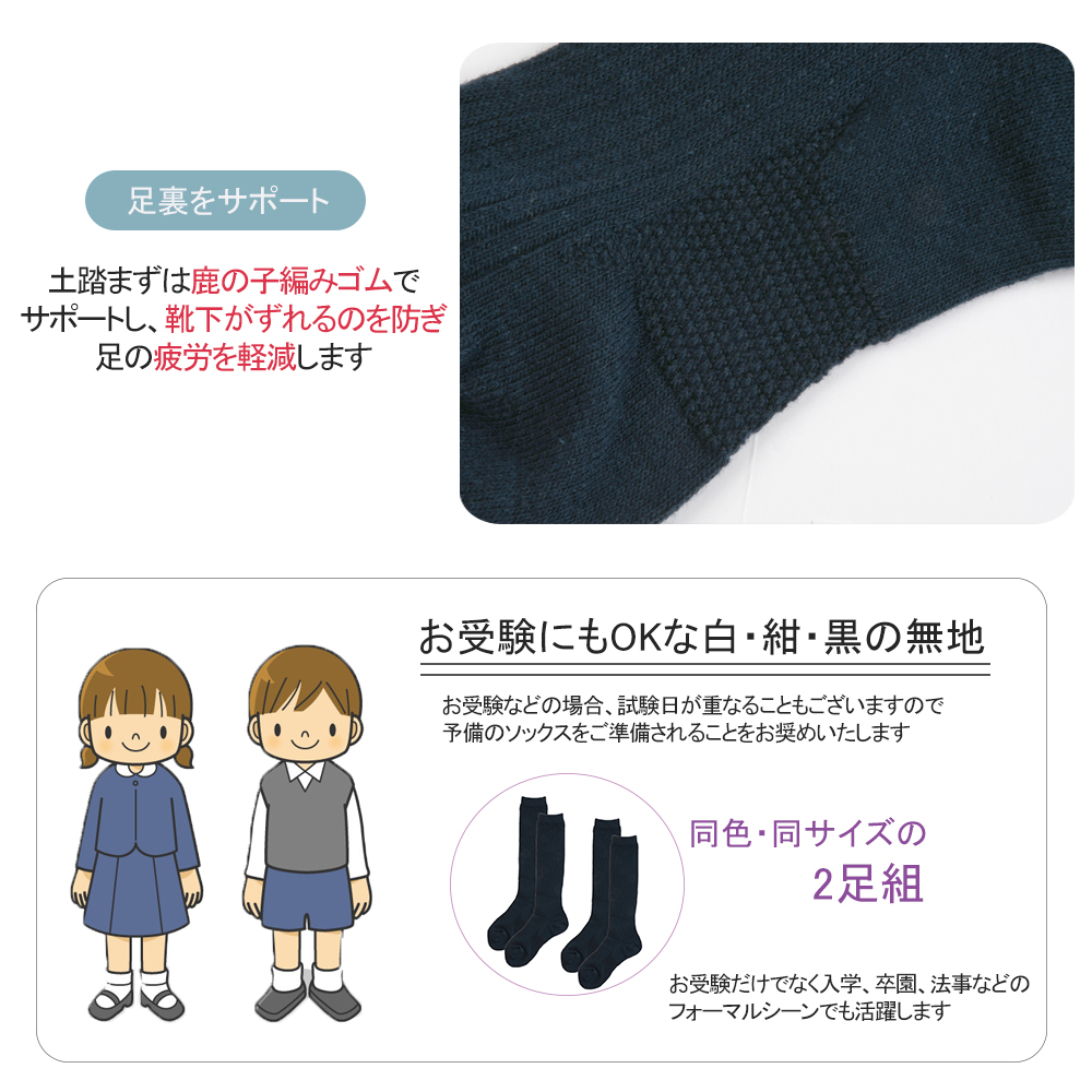 丈夫で長持ち!日本製の膝下ハイソックス2足組★よつば洋品店オリジナルのリブ編みのハイソックス2足組です。