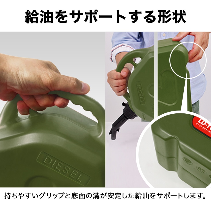 キャンプ・DIY、暖房、ガーデニング、農作業などの予備燃料容器として携帯しやすいサイズです。