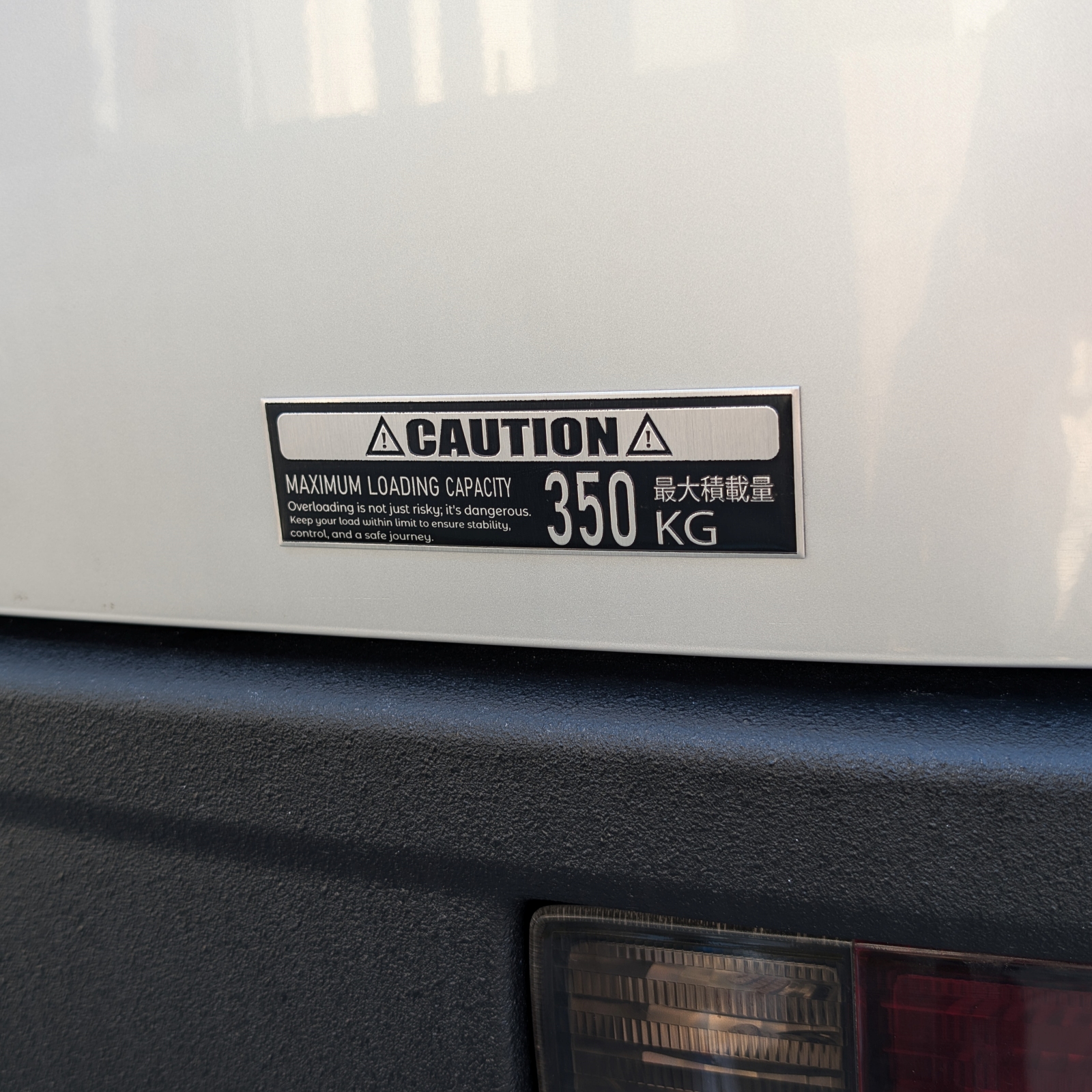 日本語表記の最大積載量ステッカーで中々気に入ったものがなかったので当店でオリジナルとして作りました。
