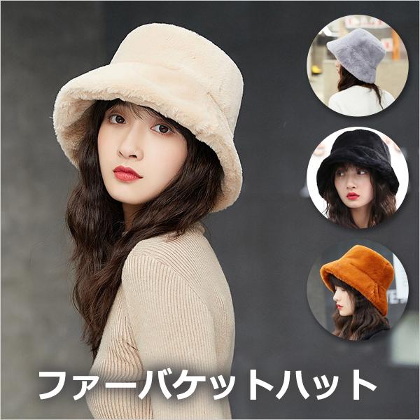 ファーバケットハット バケハ ハット エコファー 帽子 レディース かわいい ふわふわ ボア ファー帽子 韓国ファッション あったか 厚手 もこもこ 防寒 保温