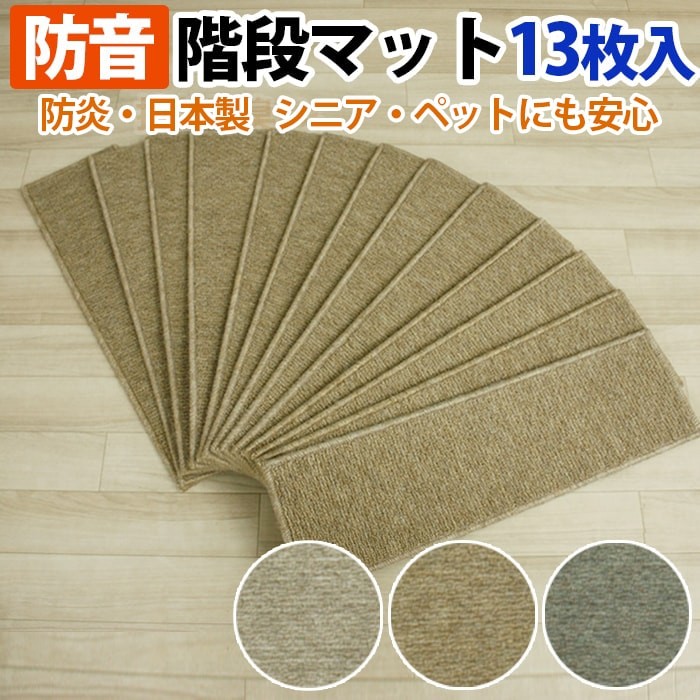階段マット 13枚セット 滑り止めシート付き 防音 遮音 階段シート 約20cm×70cm 13枚入り (バラ売り追加も可能) 日本製 防炎 フォニー (Y) ペットマット 爆買