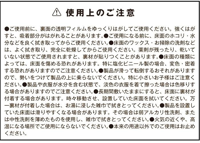 ※長期間敷きつめたままにしておくと床面に密着することがあります。月に1回程度、めくって風通しをして下さい。