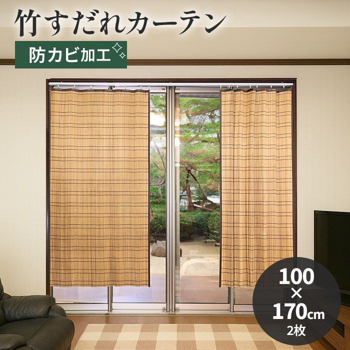 すだれ カーテン 防カビ 日除け おしゃれ 和風 約幅100×丈170cm 防かび竹カーテン (O) 2枚セット
