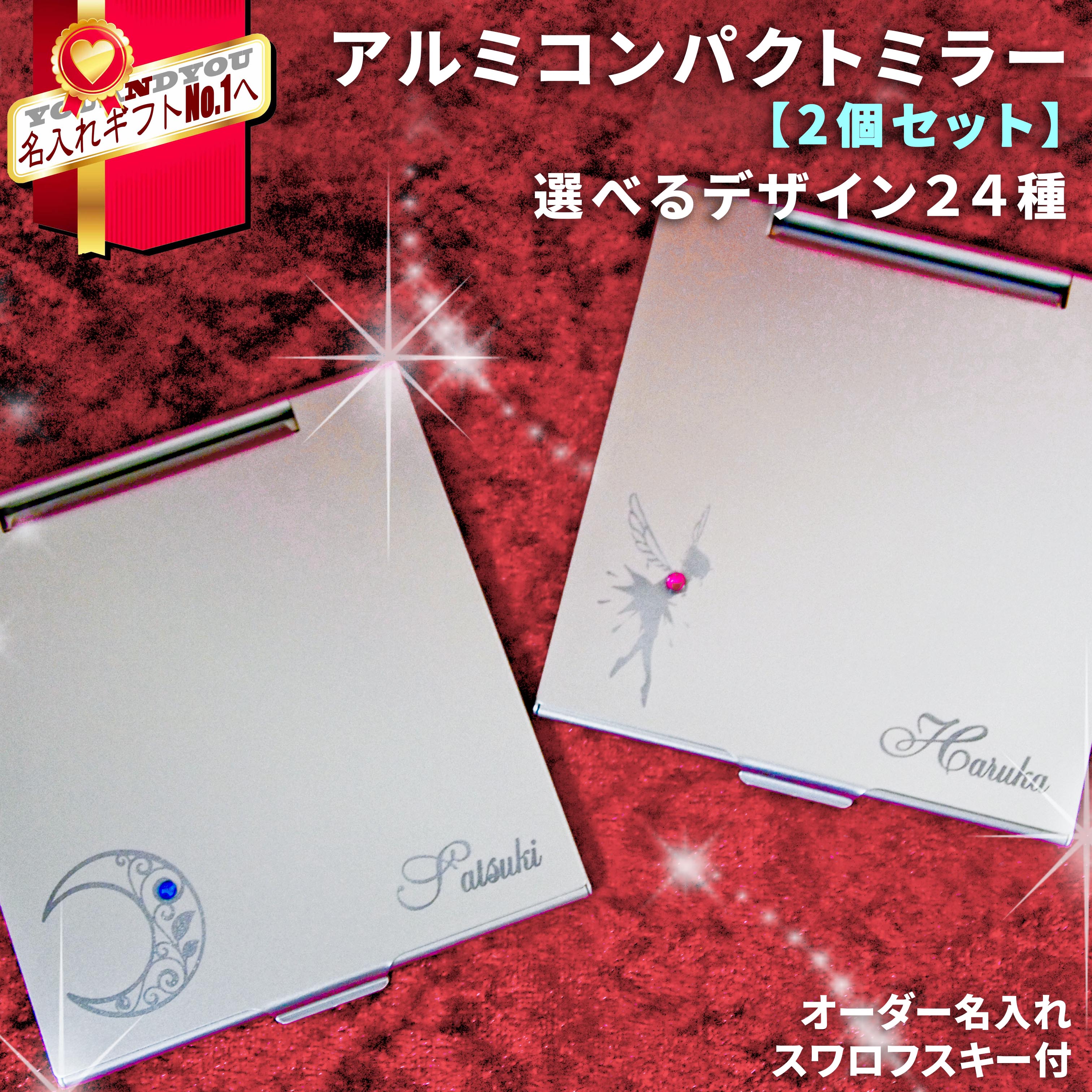P10倍! アルミコンパクトミラー 手鏡 2個セット誕生日 プレゼント 名入れギフト スワロフスキー付 ちょっとしたプレゼント 卒業 入学 誕生石 ホワイトデー