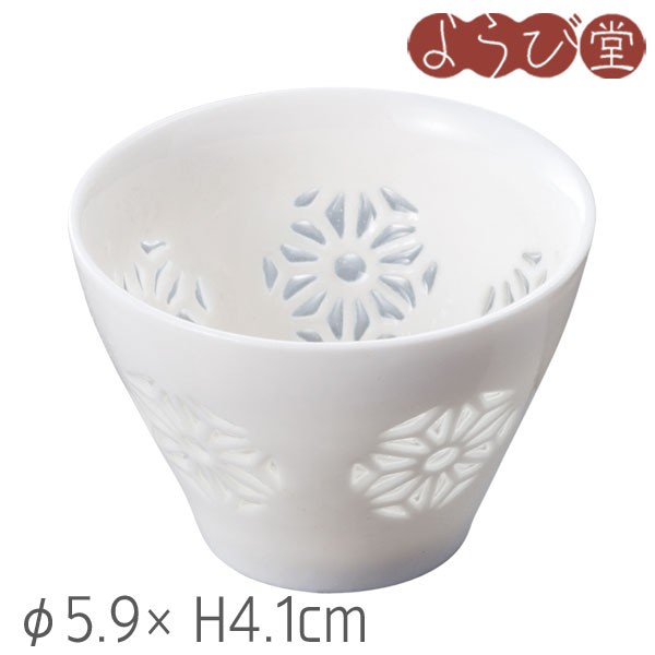 ●サイズ:約径5.9×高さ4.1cm ●容量:約50ml ●重量:約30g ●材質:磁器 ●製造地:中国製[検索ワード]ほたる、蛍手、ほたるで、小鉢、珍味入れ、豆鉢、ぐいのみ、ぐい飲み、猪口、ようび、用美、涼美、ヤマコー、26248