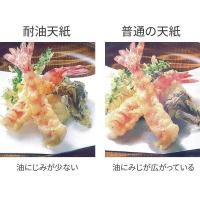 約10cm角のミニサイズの耐油天紙です。耐油天紙は長時間経過しても油がにじみにくく天ぷらがべとつかず揚げたての美味しさを保ちます。余分な油が器にこびりつきにくく後片付けが簡単です。