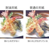 約10cm角のミニサイズの耐油天紙です。耐油天紙は長時間経過しても油がにじみにくく天ぷらがべとつかず揚げたての美味しさを保ちます。余分な油が器にこびりつきにくく後片付けが簡単です。