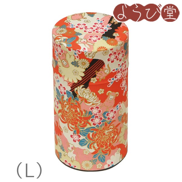 日本古来の茶筒に和紙を巻いてデザインしたおしゃれな茶筒「ぽっかん」シリーズ。花柄の中に干支の動物が隠れています。お菓子入れとして使っても素敵です。中蓋付き。