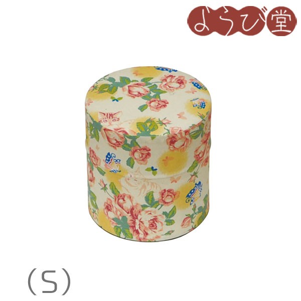日本古来の茶筒に和紙を巻いてデザインしたおしゃれな茶筒「ぽっかん」シリーズ。花柄の中に猫が隠れています。お菓子入れとして使っても素敵です。中蓋付き。