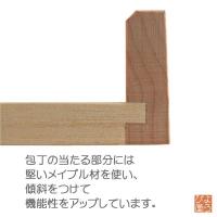 そば、うどん、麺類などの生地を切るときに定規のようにして使います。包丁の当たる部分には堅いメイプル材を使い、傾斜をつけて機能性をアップしています。