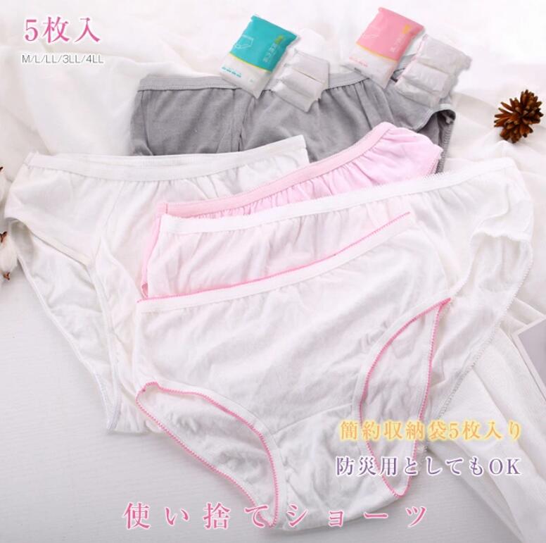 5枚セット コットン100% 使い捨てショーツ 大きいサイズ 旅行 出張 綿100% レディース メンズ トラベル 災害 病院 入院 生理 個包装 衛生 下着 インナー 介護
