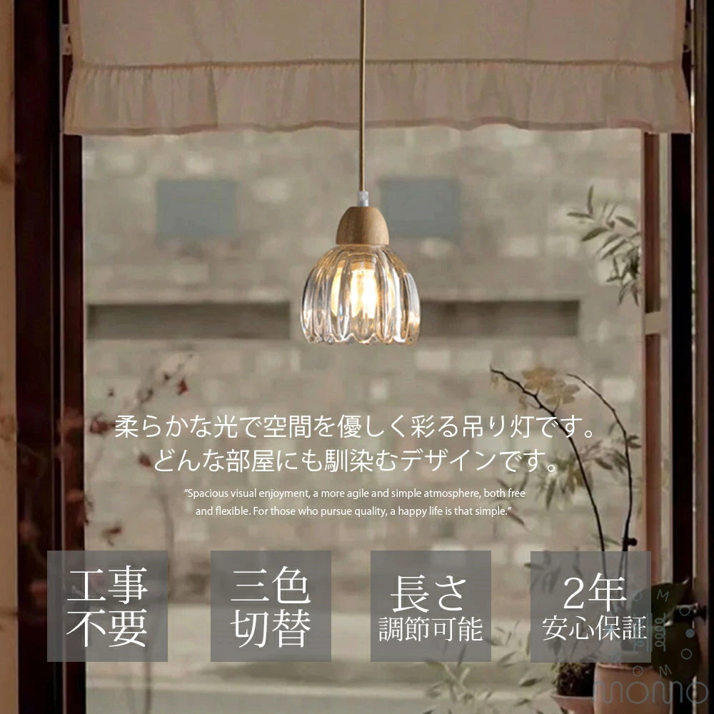 ペンダントライト ガラス おしゃれ 北欧 ダイニング キッチン 和風 LED 電球対応 透明 1灯3灯 ダクトプラグ 照明器具 吊下げ灯 引掛けシーリング ダクトレール