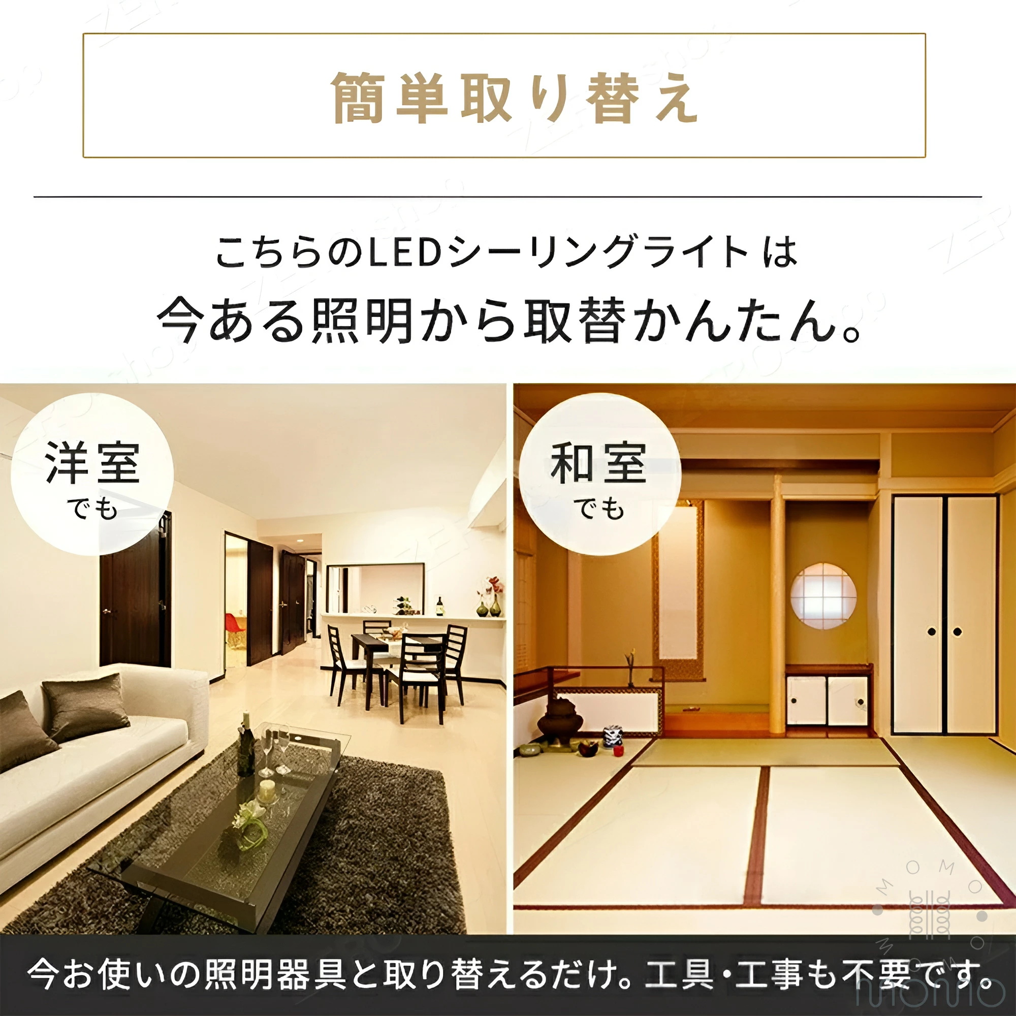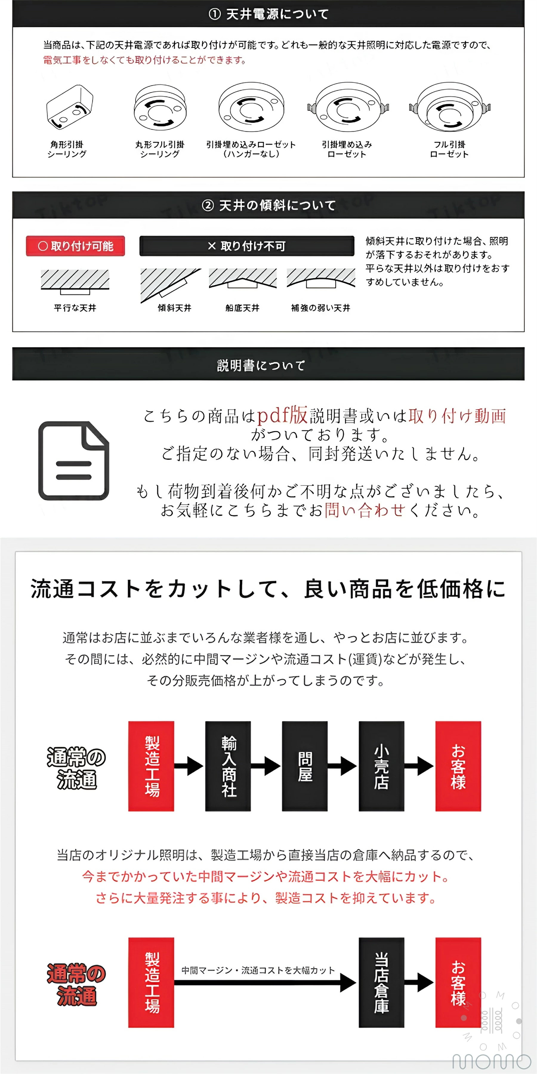 注意:ご自宅の天井にある引っ掛けシーリング器具が天井に埋め込まれていないため、製品の引っ掛けシーリングが露出する可能性があります。予めご了承くださいますようお願いいたします。