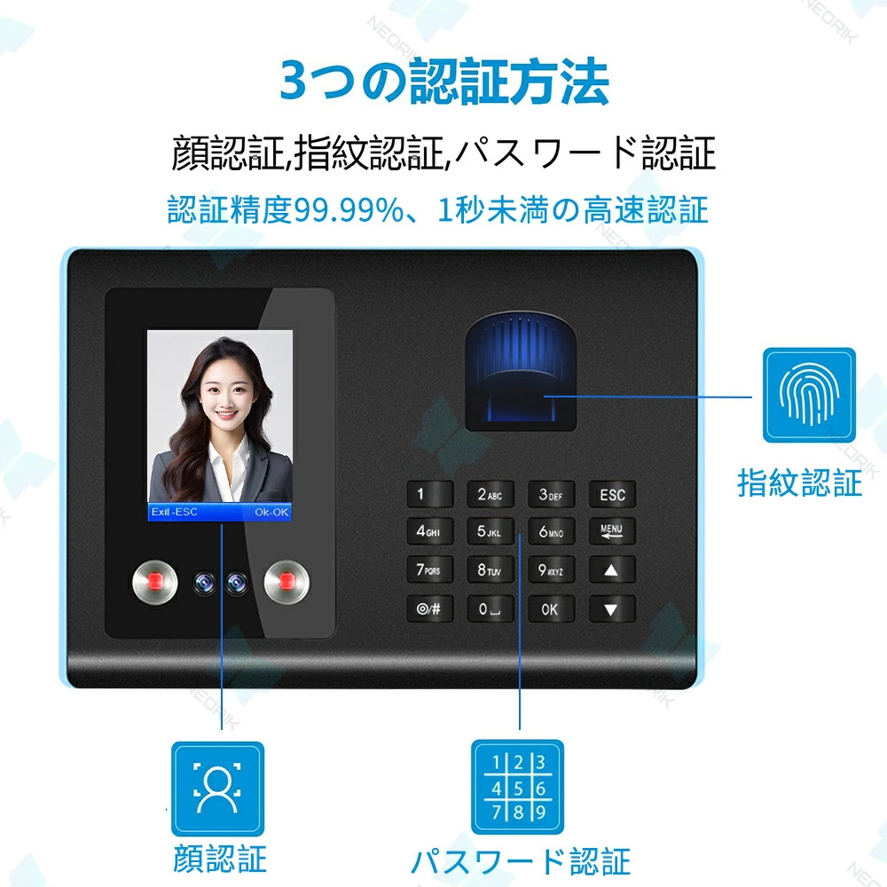 タイムレコーダー 勤怠管理機 顔認証・指紋認証・パスワード認証 自動集計機能 出勤レコーダー 勤怠レコーダー 電子タイムレコーダー USBデータ管理 簡単設定