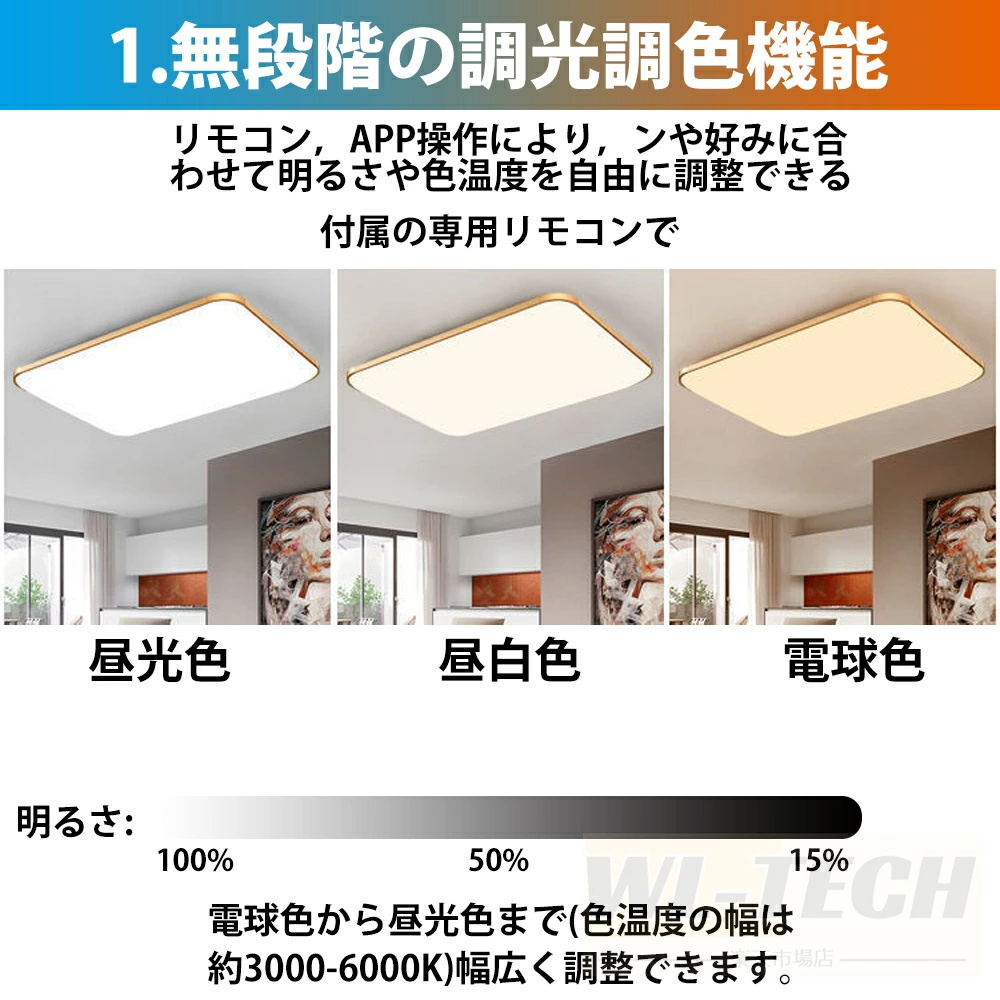 照明の色:昼光色,電球色,3色調光,調光調色リモコン付き