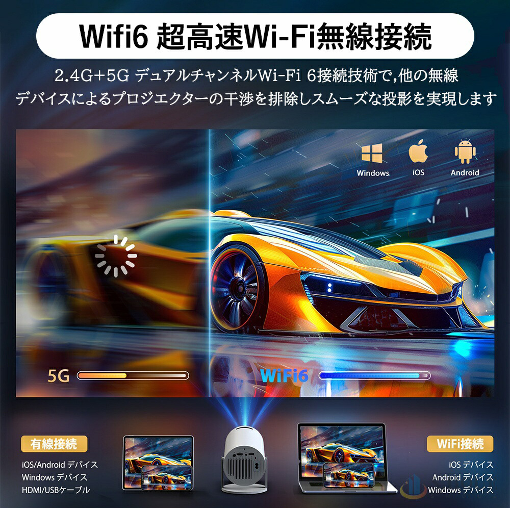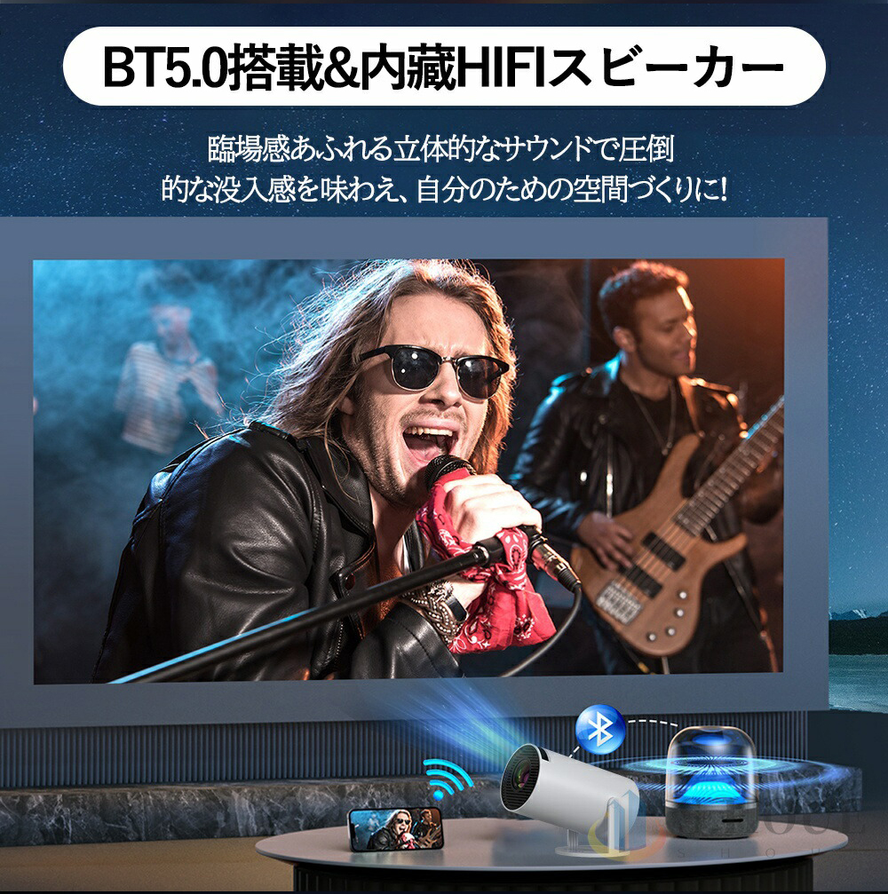 2.4Gと5Gの両方のネットワークに対応し、Bluetooth 5.2でヘッドホン、スピーカー、その他のオーディオデバイスに簡単に接続できます。プロジェクターは白い壁に直接投影するため、スクリーンが不要で、詳細な色彩を自然な形で再現し、美しい映像を楽しむことができます