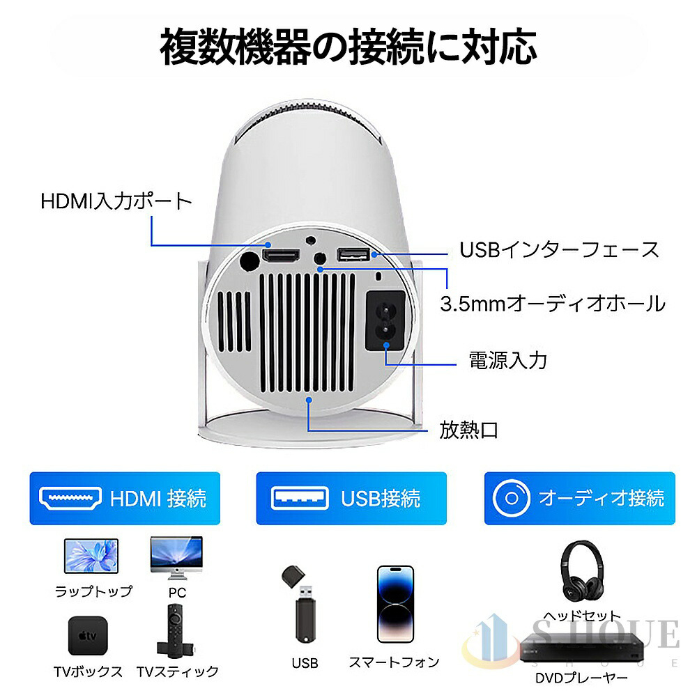 ノイズレベルは<25dBで、プレミアム放熱システムにより、静かな映画鑑賞環境を保証します。このスマートムービープロジェクターはHDMI、USB、オーディオポートを備えており、テレビスティック、USBディスクなどと互換性があります。 母の日 父の日 敬老の日 クリスマス 女性 人気 誕生日 還暦祝い お祝い 合格 ギフト プレゼント 父の日ギフト 父の日 おしゃれ 母の日 敬老の日 恋人 子供 キッズ プレゼント ギフト 成人の日 成人式 バレンタイン 人気 おすすめ