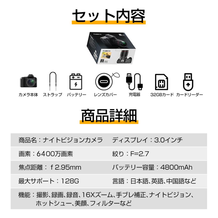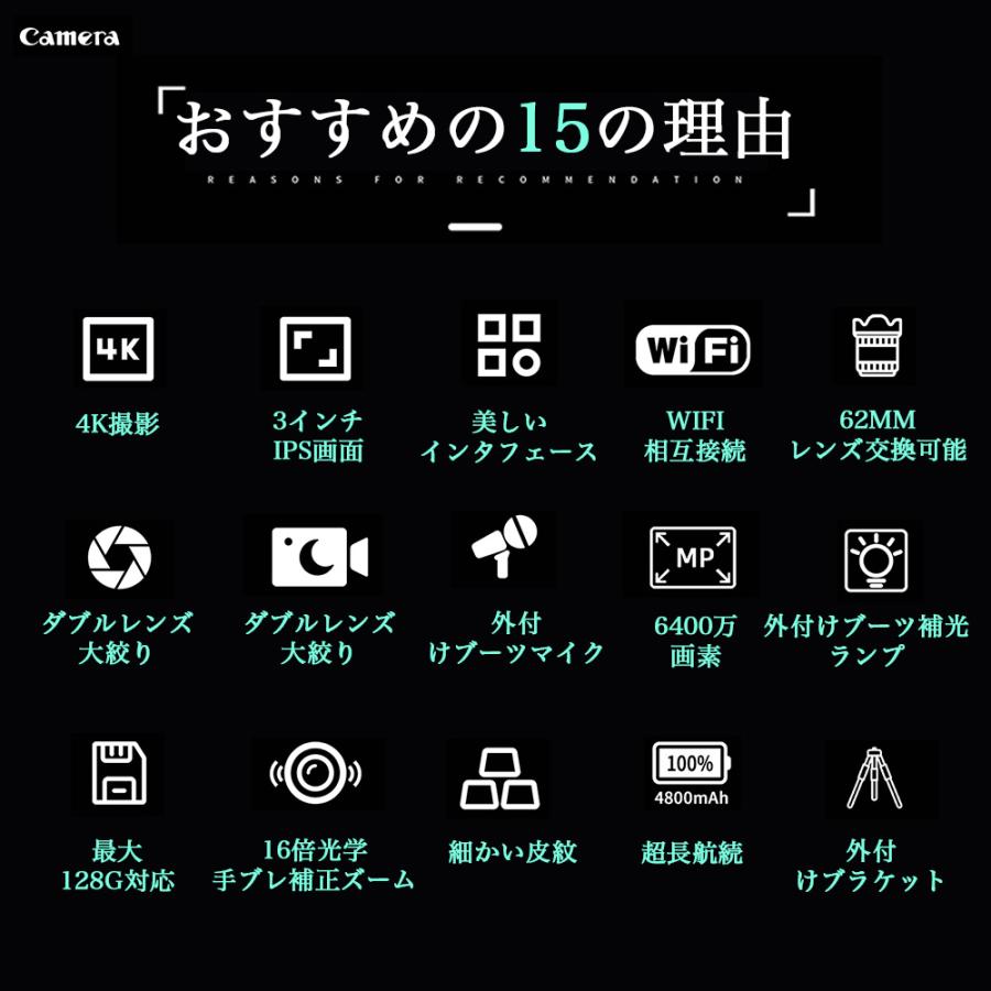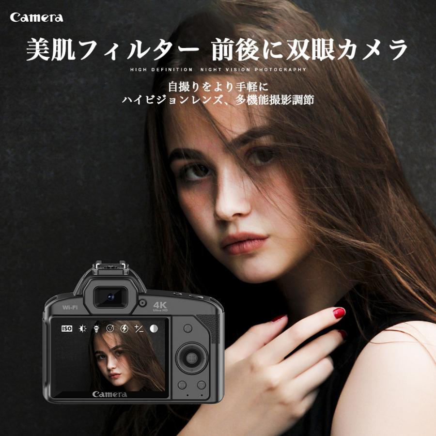 デジタルカメラ 4K 6400万画素 16倍ズーム 小型 ビデオカメラ IRナイトビジョン 電子手ブレ補正 VLOGカメラ スマホ連動 Wifi転送 高画質 超軽量 防塵 初心者