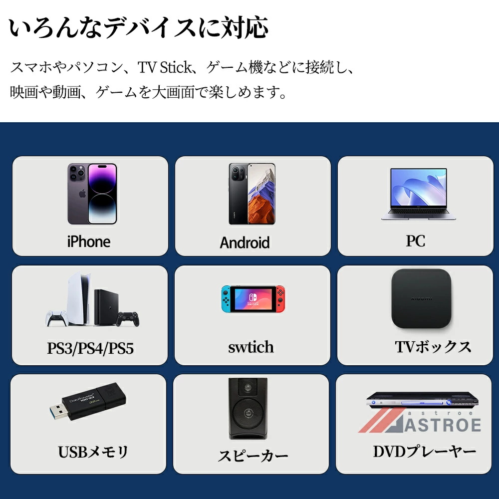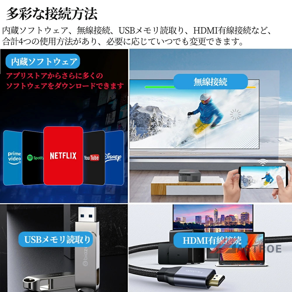 プロジェクターは、超高速5G&2.4Gと先進のWi-Fi6技術を搭載しており、遅延を最大60%削減されて、より高速で安定したインターネット接続を実現します。Wi-Fi経由でiOS、AndroidおよびWindowsデバイスを素早く接続でき、超スムーズで遅延のないオンラインゲーム、映画鑑賞、ビデオ学習体験を簡単に楽しむことができます。