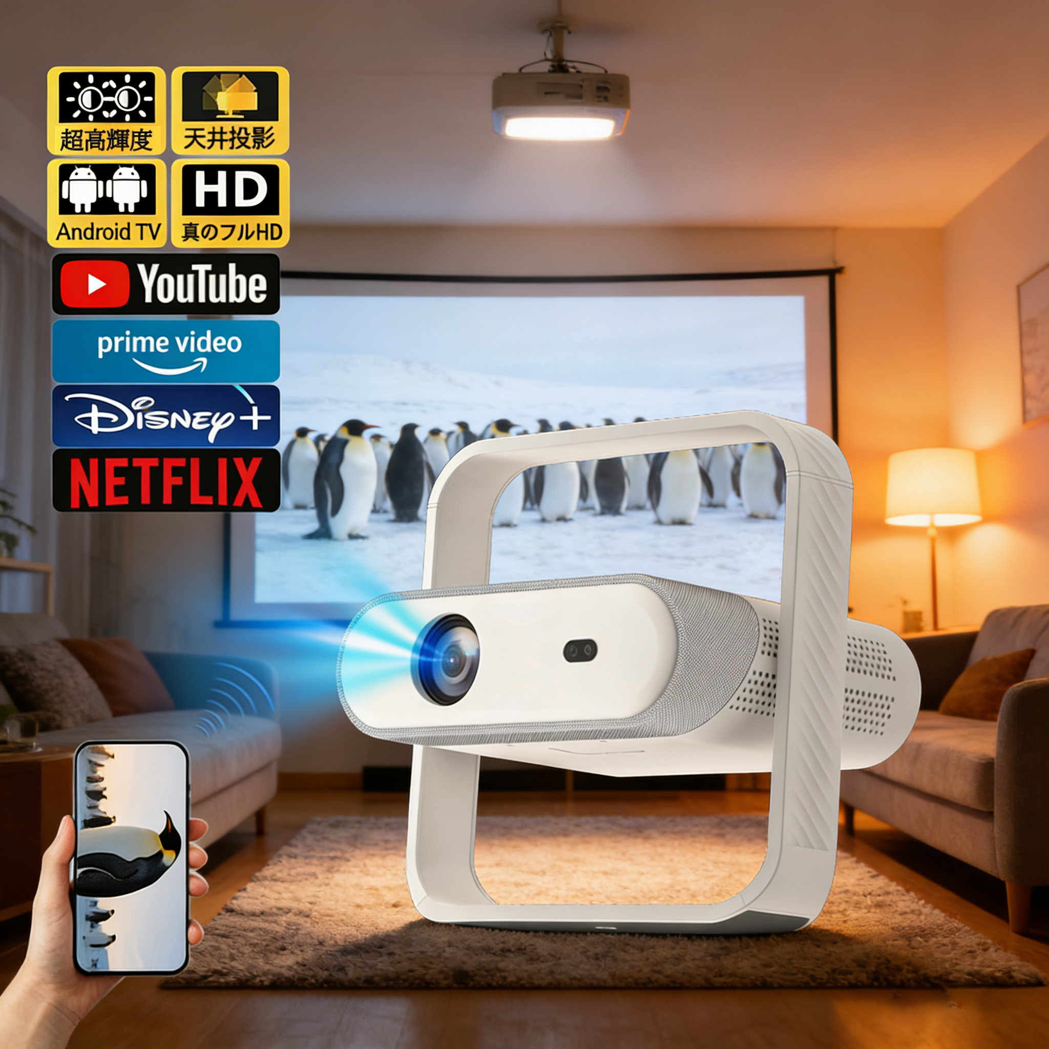 プロジェクター 新品 天井投影 小型 家庭用 WIFI6 4K対応 35000LM フルHD スマホと繋げる 自動フォーカス 350ANSI高輝度 リモコン付き 自動台形補正 簡単設定