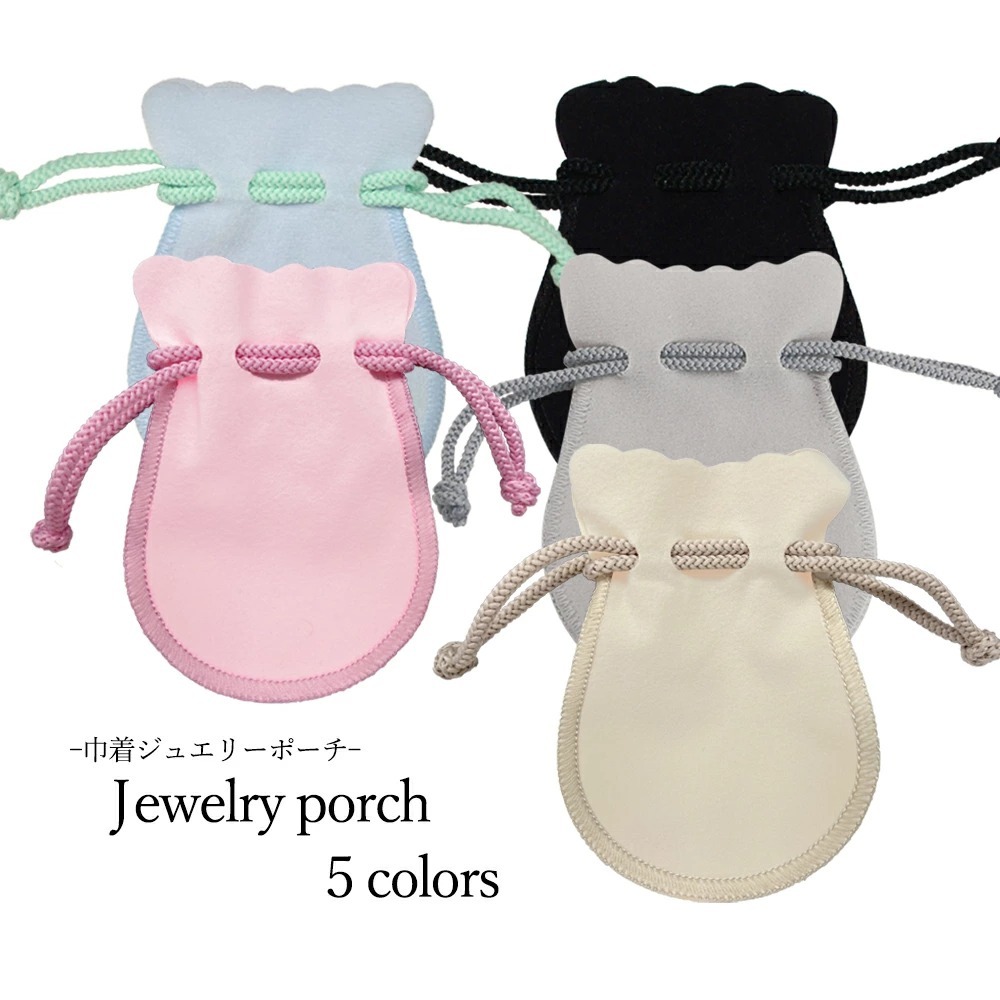 ジュエリーポーチ 携帯用 アクセサリー袋 きんちゃく型 5カラー 5点購入でメール便送料無料 スエード ベルベット 可愛い オシャレ エレガント 小物袋