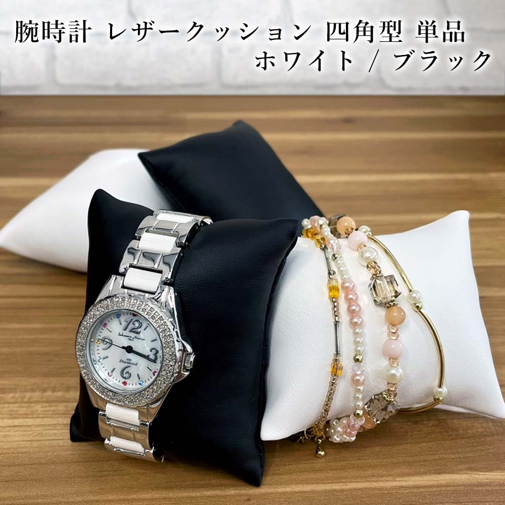 腕時計 高級 レザークッション 単品1個 四角型 ブラック ホワイト 黒 白 2色 合皮 サイズ調整可能 交換用 ディスプレイ 収納