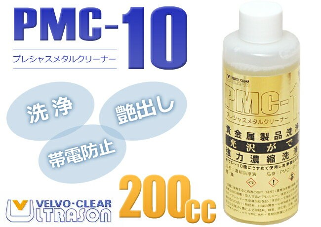 洗浄液 PMC-10 メタルクリーナー VELVO-CLEAR 200cc 強力濃縮 超音波洗浄 貴金属 ケア プロ用 艶出し 静電気防止 帯電防止 宝石 ジュエリー