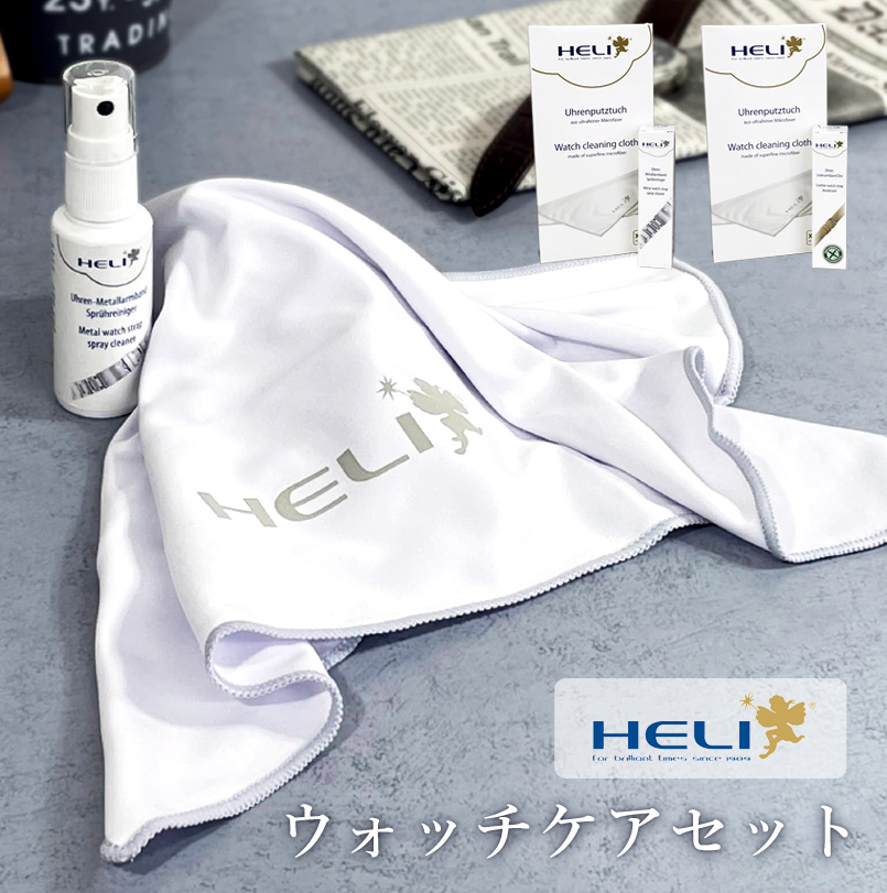 ウォッチケアセット マイクロファイバークロス と 選べるスプレー 2種類 メタルブレスレット用 革バンド用 時計工具 腕時計 工具 HELI ヘリ
