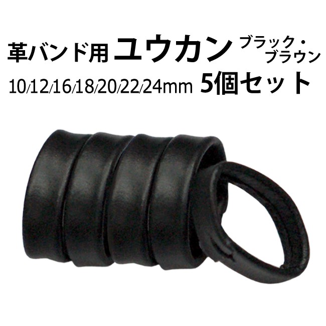 革バンド用ユウカン 5個セット ブラック/ブラウン 10/12/16/18/20/22/24mm DE-6059BK/BR