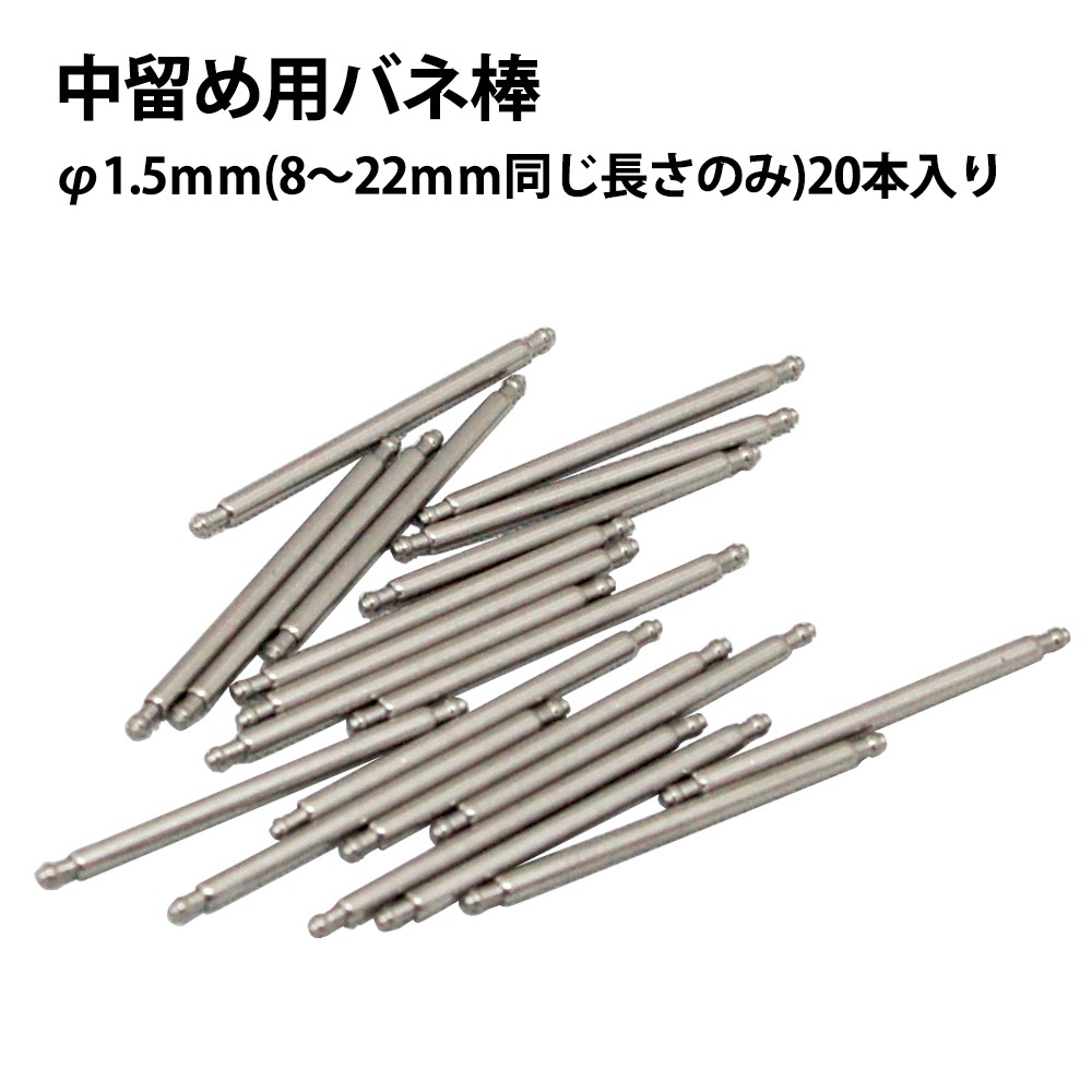 中留め用バネ棒 φ1.5×8?22mm サイズ1種類 20本入り DE-SSB150 【時計部品/修理部品/時計修理/バックル/ベルト/バンド】