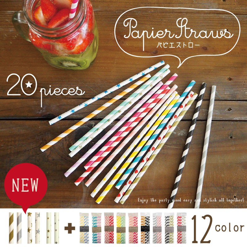 パピエ ストロー20本入 [紙ストロー ペーパーストロー DIY パーティー 誕生日 パーティーグッズ キラキラ デコレーション ディスプレイ インテリア 可愛い]