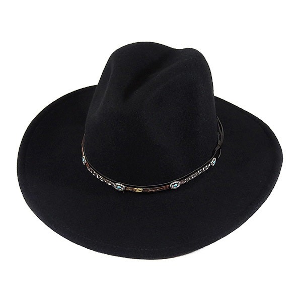 コンチョとフェザーがはめ込まれたバントがあしらわれた、クラウンが深くかぶり心地の良いウエスタンハットです。素材には、非常にソフトで撥水性に優れたプレミアムウールを使用。ブラックをベースにしたシンプルなデザインになりますので、カジュアルファッションのアクセントとしてもお使いいただけます。