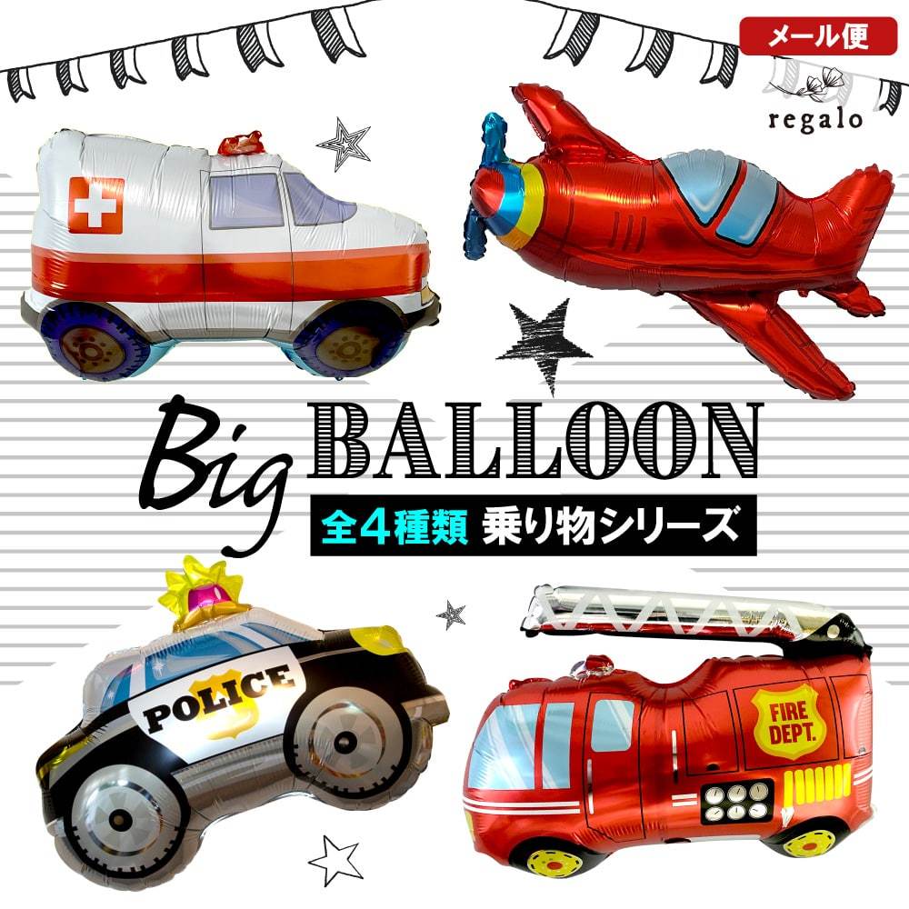| 商品名 | 【単品】 乗り物ビッグバルーン 消防車/救急車/パトカー/飛行機 |