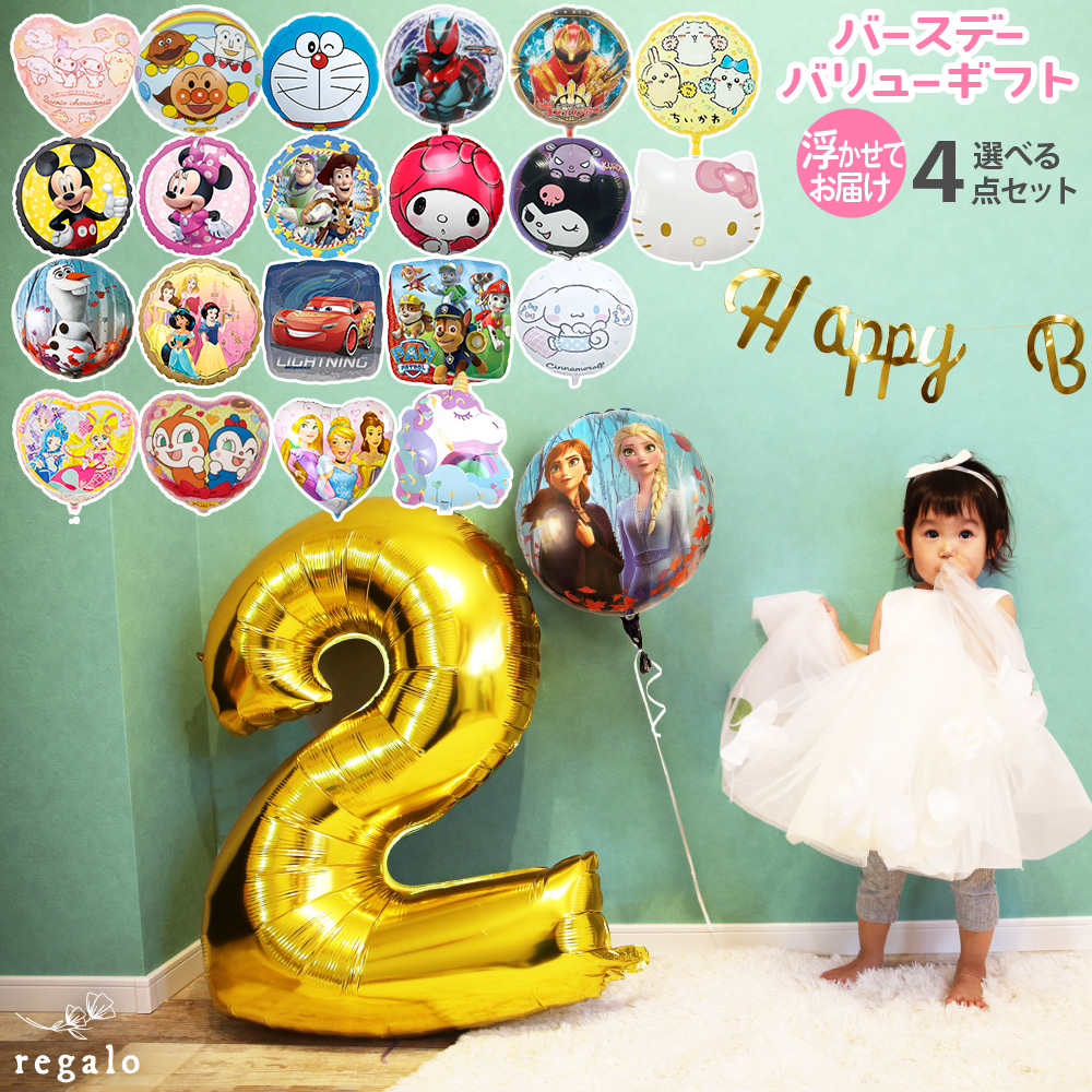 | セット内容 | ・選べるキャラクターバルーン(ガス入り) ・選べるビッグサイズナンバーバルーン [ゴールド](ガスなし) ・バースデーガーランド [ゴールド] ・選べるポストカード |