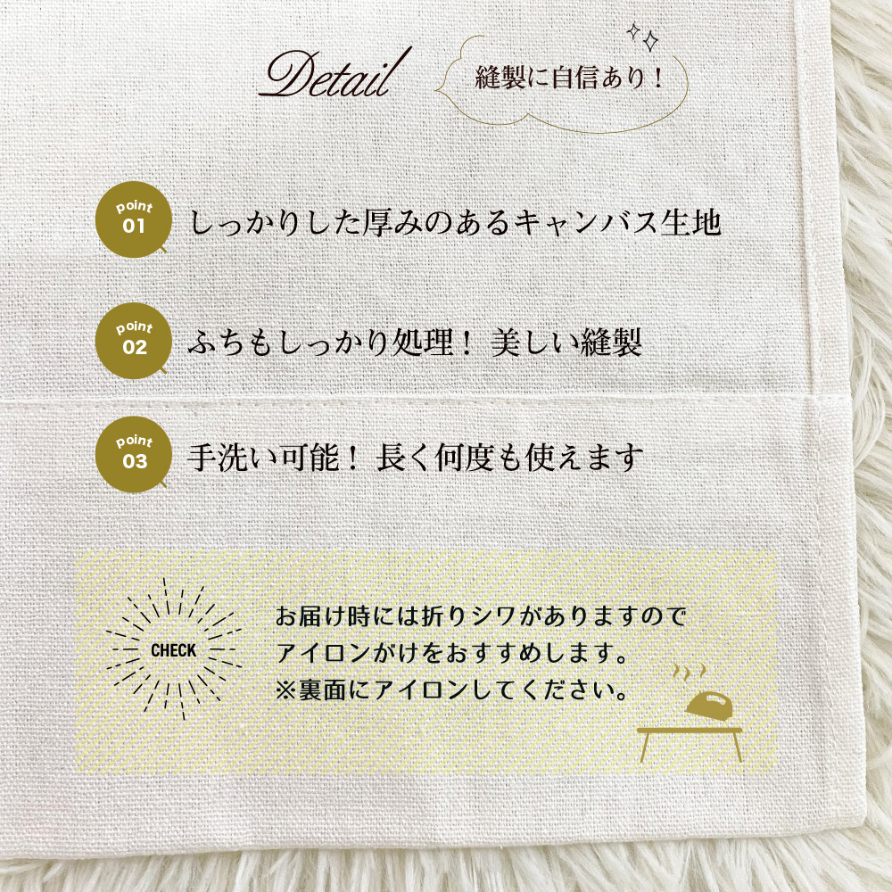 | 素材・生産地 | ・キャンバスコットン(綿)100% ・中国 |